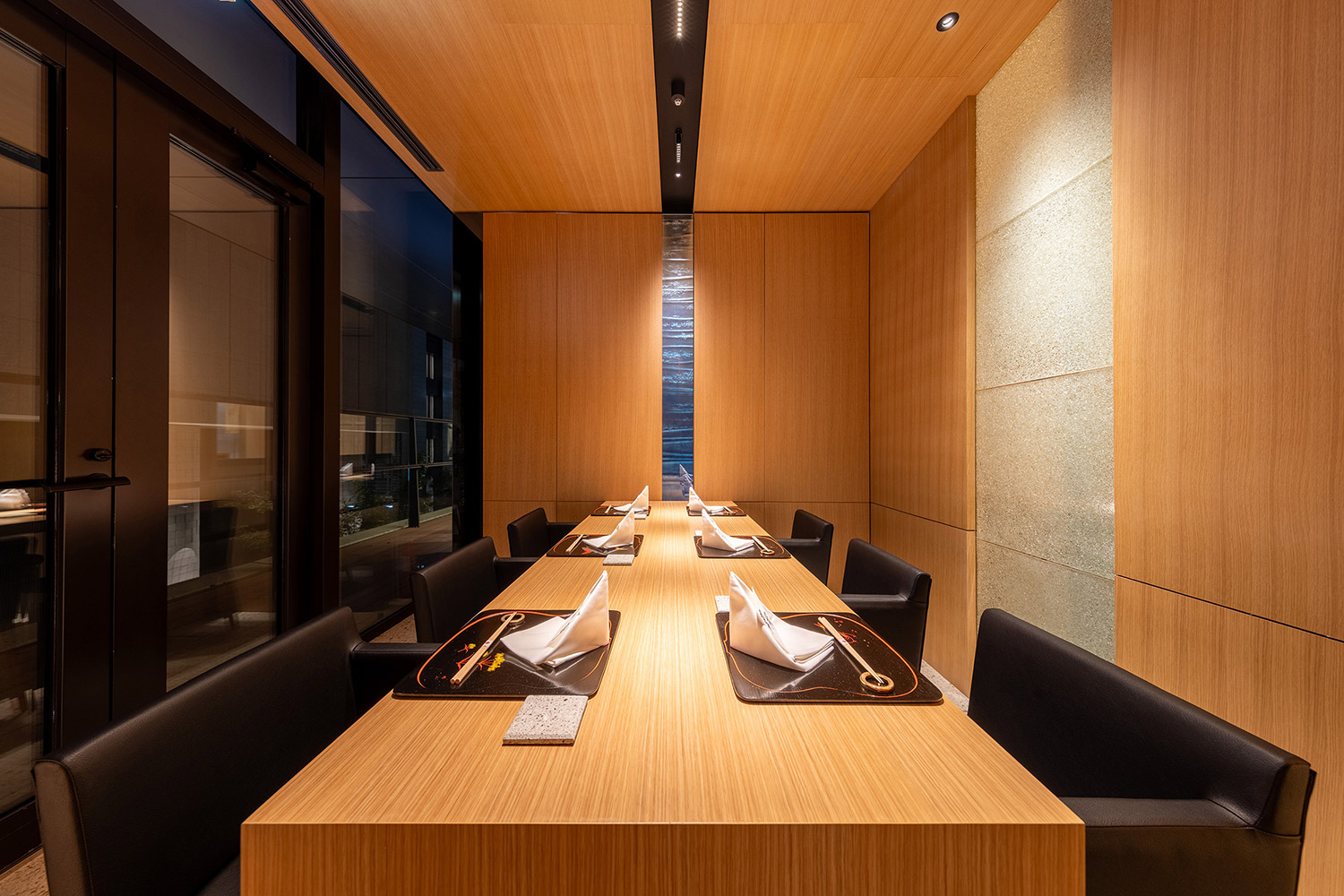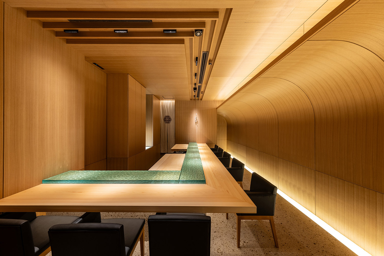 弊社は商空間デザインの専門家として空間デザインによるマーケティング「ビジネスツールとして機能する空間デザイン」の提供をモットーとしている。今回のプロジェクトでは、空間を”寿司を主役にするパッケージ”として捉え、いかに寿司を美しく魅力的に見せるか、ということに注力した。